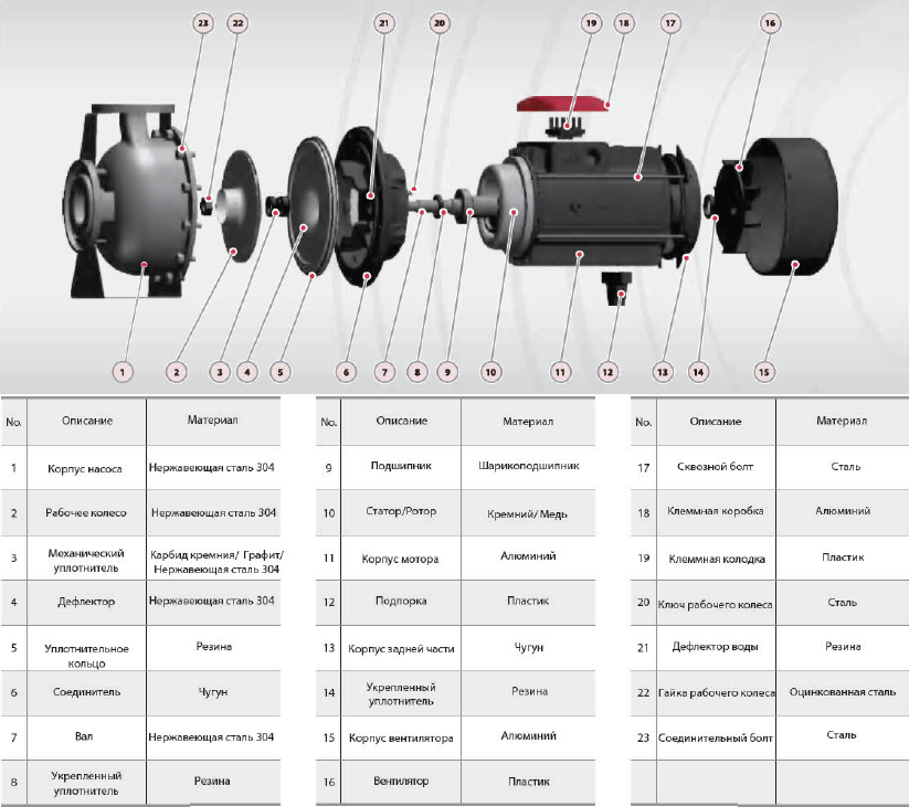 • Качественный подшипник, износостойкое механическое уплотнение.